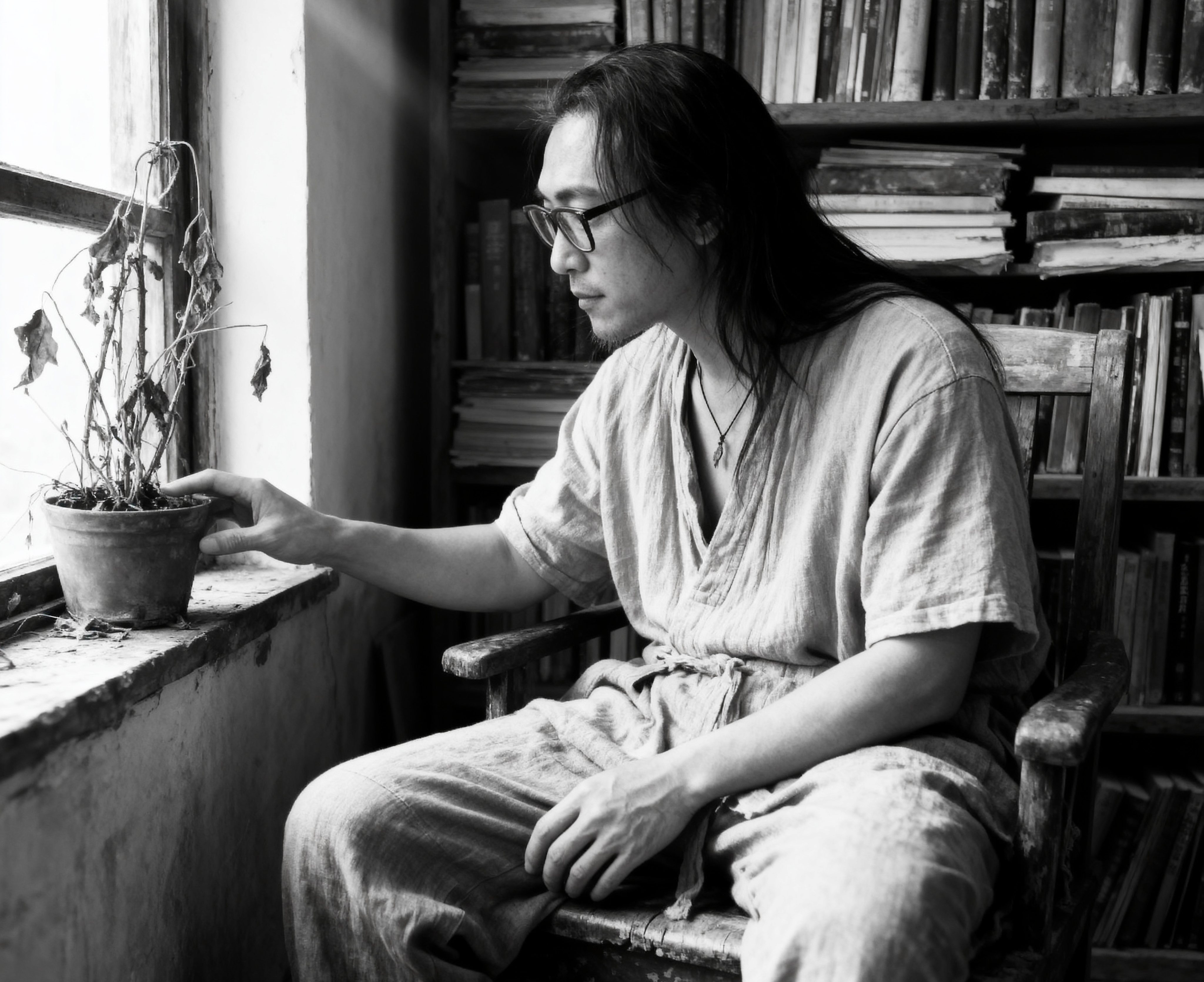 A Taiwanese artist and essayist whose creations revolve around the philosophy of wabi-sabi. He uses natural materials and imperfect textures to express the quiet beauty of impermanence and time. His paintings and writings evoke calmness, solitude, and acceptance.